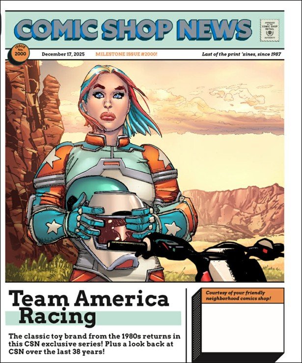 "Team America Racing," drawn by Josh Hood with colors by Lorenzo Scaramella, published in "Comic Shop News" issues 2000-2005 from CSN PressSocial Media Handles: facebook.com/MatthewLprice